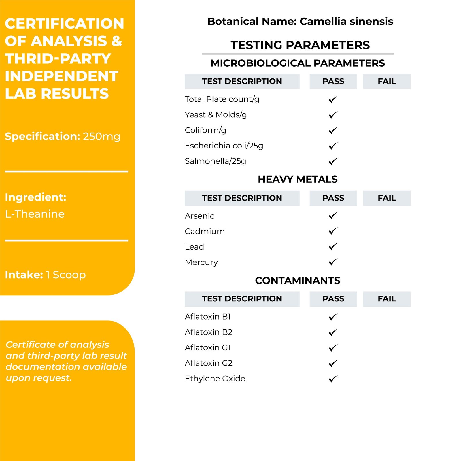 Every batch of this L-Theanine supplement is tested for heavy metals, contaminants, and microbiological safety. Consequently, you receive a product that meets strict standards for reliability and quality.