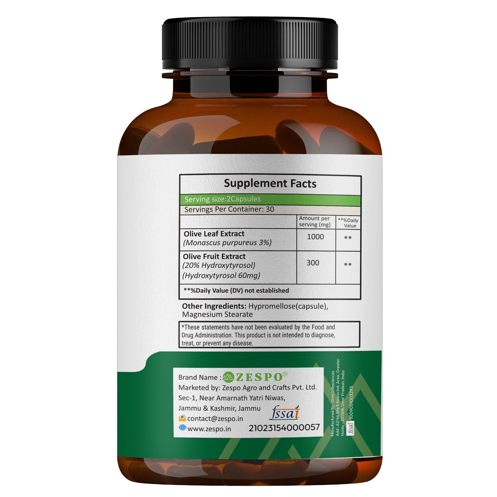 Zespo Olive Leaf Extract 1300mg with 60 Vegan Capsules